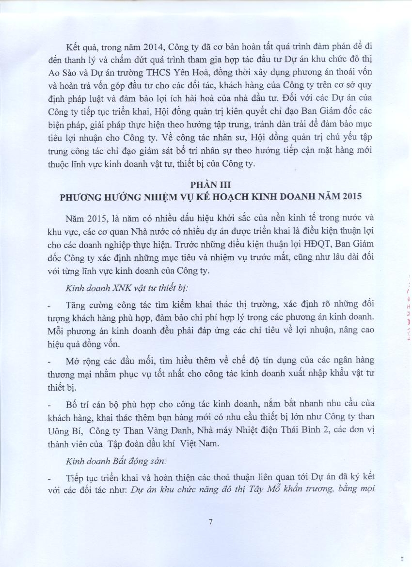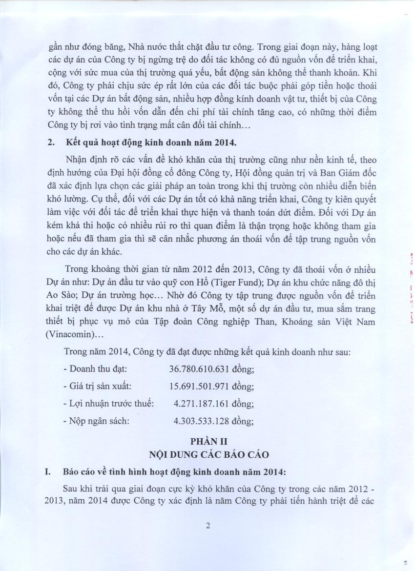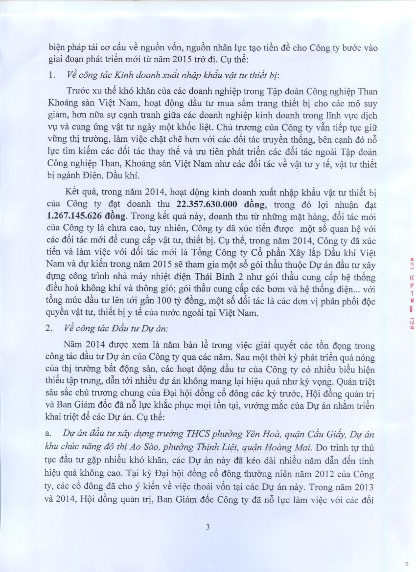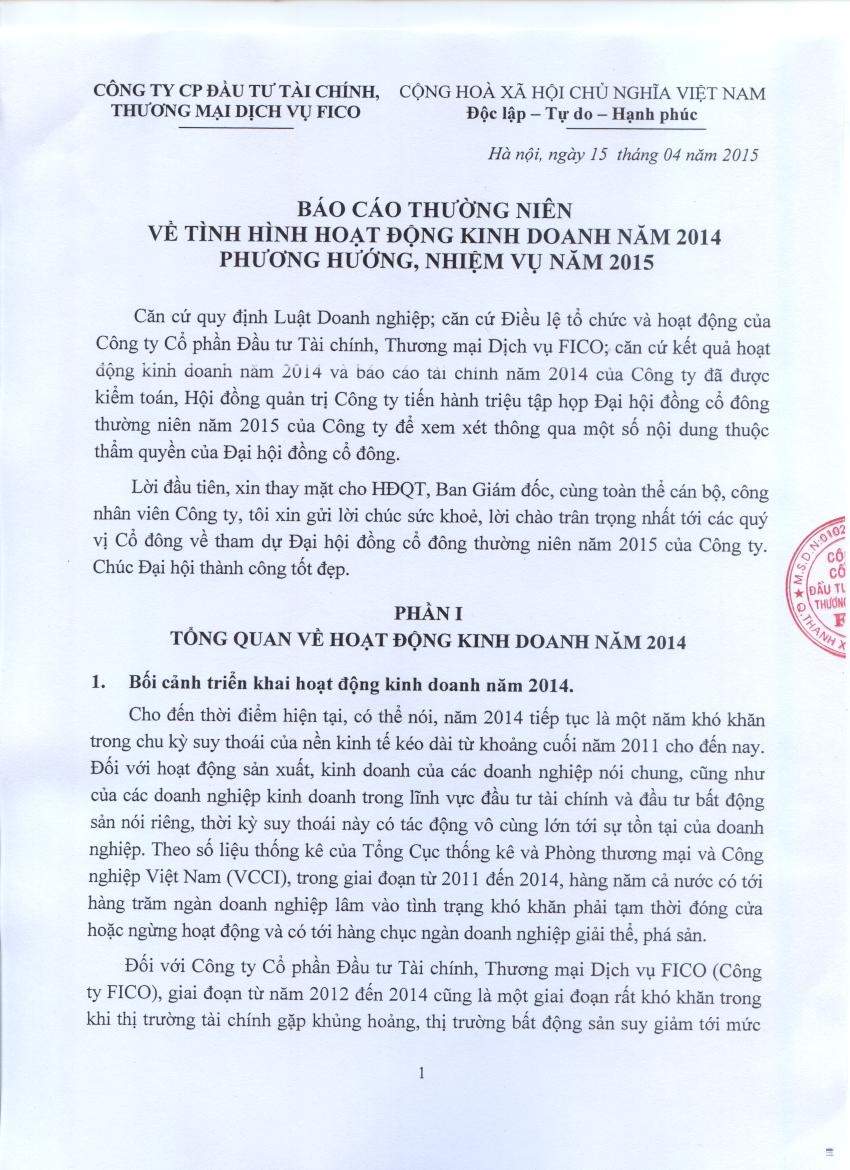 Báo cáo thương niên về tình hình hoạt động kinh doanh năm 2014 phương hướng, nhiệm vụ năm 2015 09/03/2018 bictweb