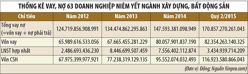 Năm 2015, trong bối cảnh tín dụng bất động sản được Ngân hàng Nhà nước công bố mức tăng trưởng 11% chỉ sau 6 tháng, tổng 63 doanh nghiệp niêm yết được theo dõi nói trên lại chỉ tăng được xấp xỉ 2.300 tỷ đồng vốn vay trên dư vốn vay 80.000 tỷ đồng đầu năm, tương đương mức tăng trưởng vay nợ chưa tới 3%.